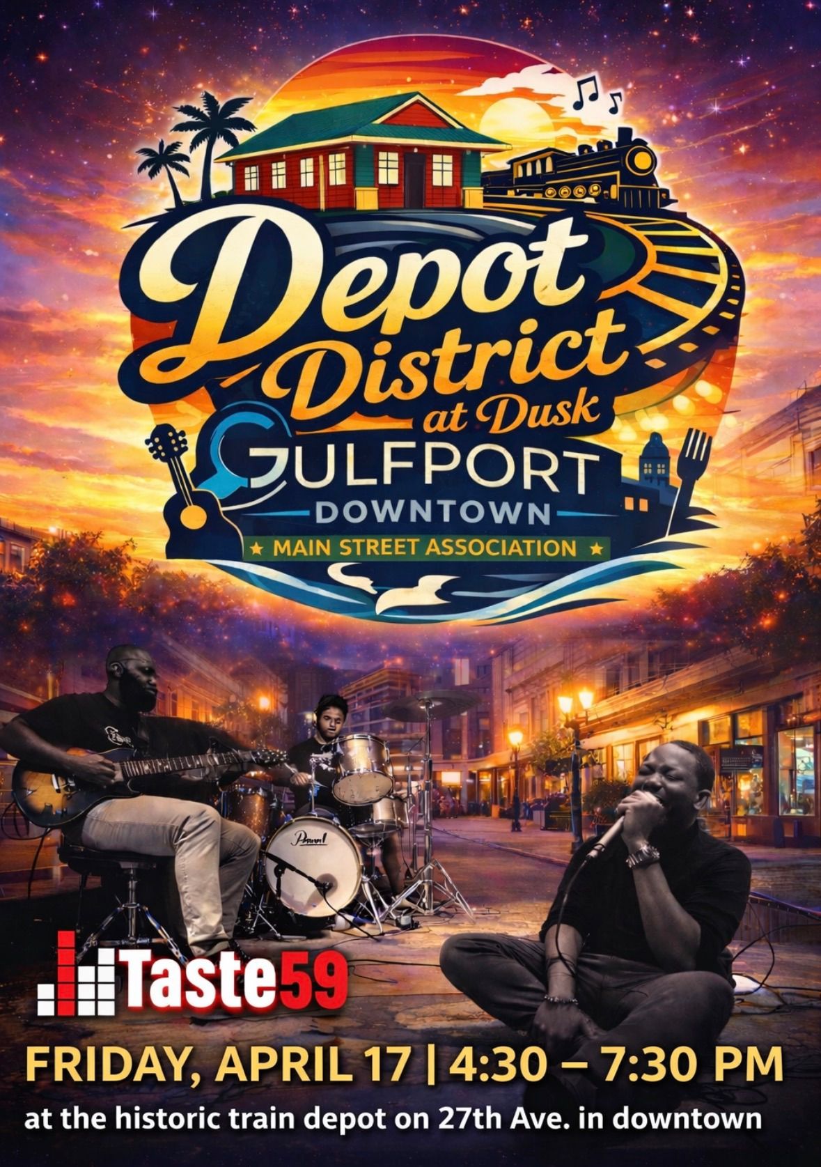 If you’re looking for something louder than a market or art class, this is your move.Depot District at Dusk — April 16 in Gulfport