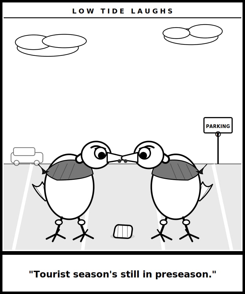This week’s Low Tide Laughs goes right in that lane: local, a little ridiculous, and probably familiar if you’ve spent enough time around birds, bait, parking lots, or generally stubborn Gulf Coast creatures.